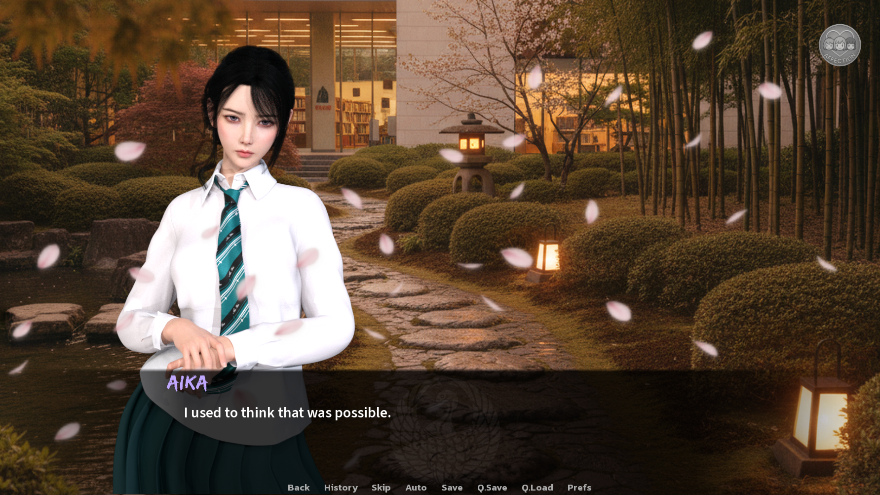 I'm just a fan. I don’t have a game dev background. I taught myself RenPy, 3D modeling, python, music composition, and basically everything else needed to make a VN. I've spent months writing the script (400+ pages of dialogue), coding (20,000+ lines of code), rendering (1,000+ renders and CGs), and polishing over and over in my spare time.